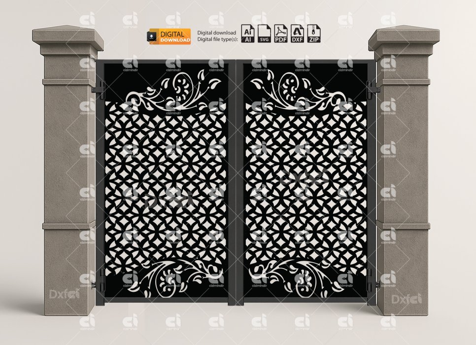 DXF Panel Lazer Bahçe Kapısı | Gate DXF Laser Cut Kesim Modeli #3361