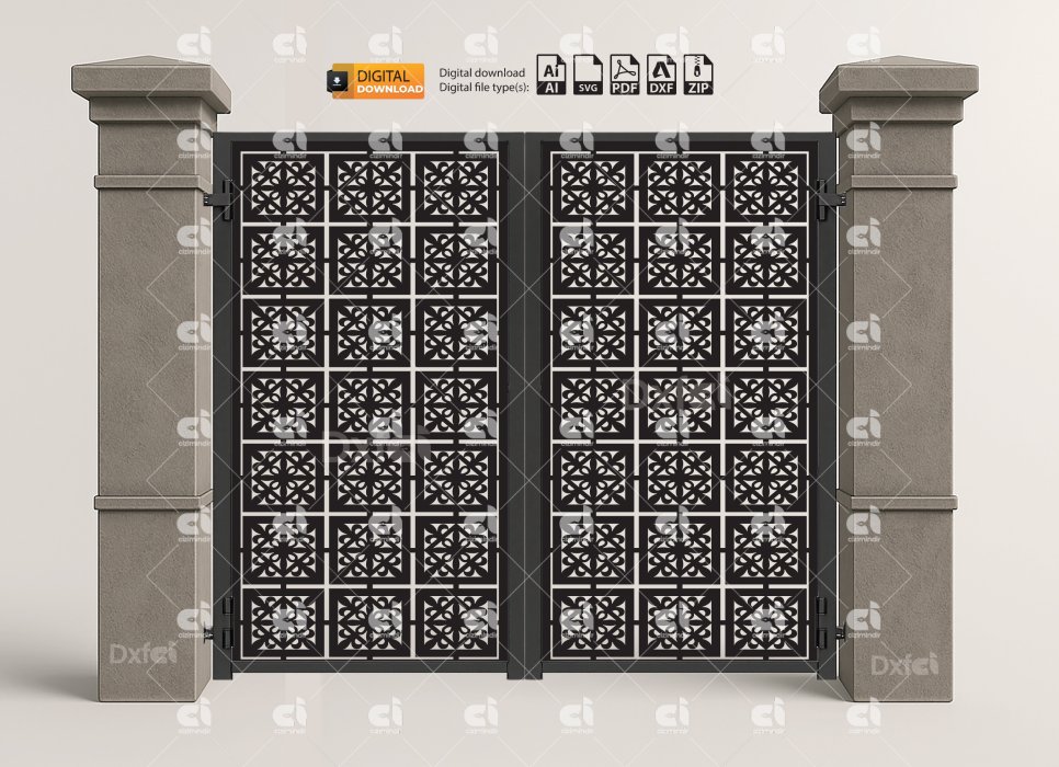 DXF Panel Lazer Bahçe Kapısı | Gate DXF Laser Cut Kesim Modeli #3364