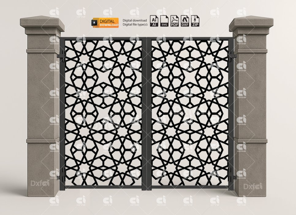 DXF Panel Lazer Bahçe Kapısı | Gate DXF Laser Cut Kesim Modeli #3365