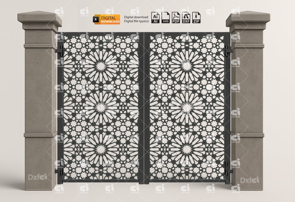 islamic Selcuklu Dxf Panel Lazer Bahçe Kapısı Gate Dxf Laser Cut Kesim Bahçe Kapısı #2845