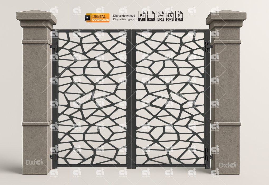 Kırık Cam Duvar Dxf Panel Lazer Bahçe Kapısı Gate Dxf Laser Cut Kesim Bahçe Kapısı #2859