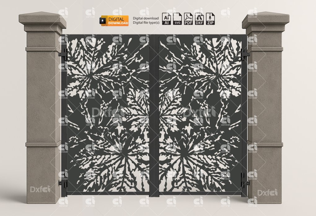 Yaprak Desenli Panel Lazer Bahçe Kapısı Gate Dxf Laser Cut Kesim Bahçe Kapısı #2864