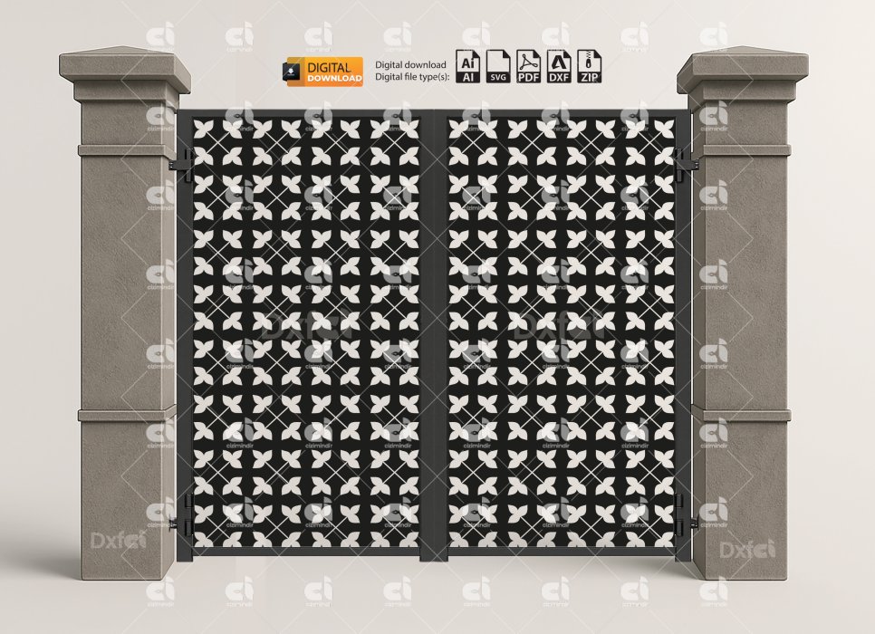 Dxf Panel Lazer Bahçe Kapısı Gate Dxf Laser Cut Kesim Bahçe Kapısı #2907