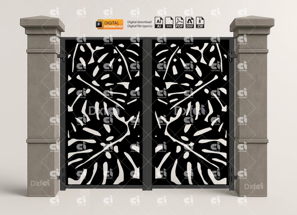 Yaprak Dxf Panel Lazer Bahçe Kapısı Gate Dxf Laser Cut Kesim Bahçe Kapısı #2912