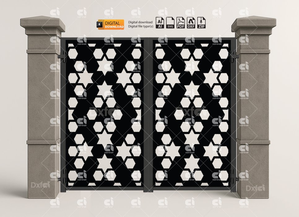 Dxf Panel Lazer Bahçe Kapısı Gate Dxf Laser Cut Kesim Bahçe Kapısı #2937