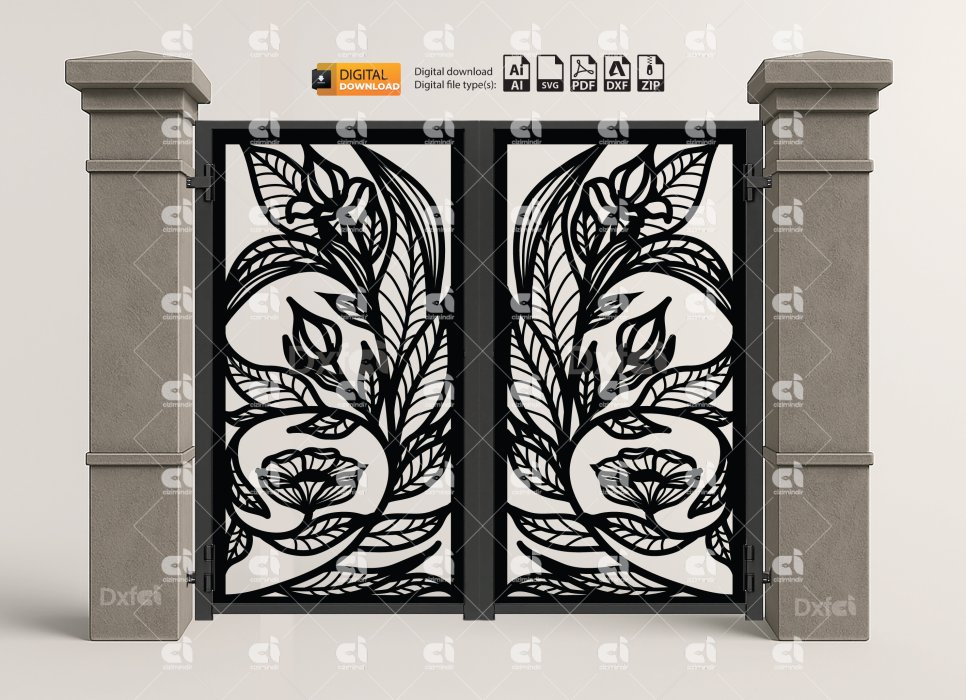 Dxf Panel Lazer Bahçe Kapısı Gate Dxf Laser Cut Kesim Bahçe Kapısı #2973