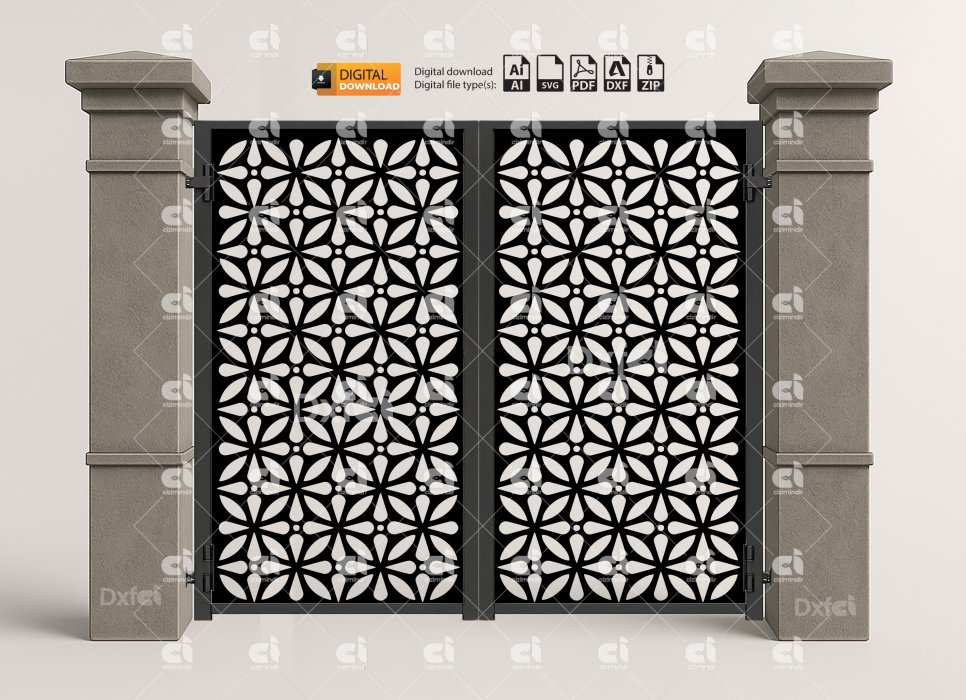 Dxf Panel Lazer Bahçe Kapısı Gate Dxf Laser Cut Kesim Bahçe Kapısı #3123