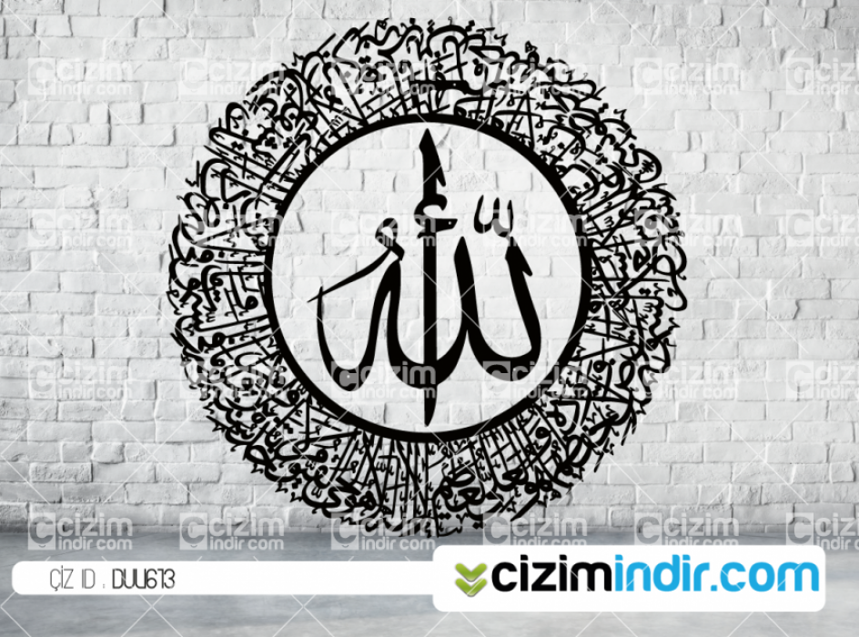 Duv613 Ayetel Kursi Allah Dekor Dosya içeriği : Ai ,Dxf ve Pdf Dosyaları yer almaktadır tüm çizim programlarında açabilirsiniz. Metal Lazer ve Ahşap Lazer Kesimler ve Cnc Router için Uyumludur. Arşiv paketi hakkında bilgi alabilirsiniz