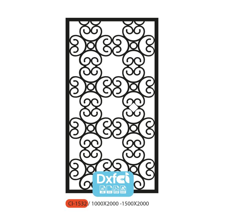 Kapı Panel Çizimleri Ferforje Seperatör Lazer Kesim Panel Dxf SVG Dekoratif Oda Bölücü Lazer Kesim Panel Korkuluk Çizimleri Lazer Kesim Çizimi Duvar Üstü Korkuluk, Villa Korkuluğu CI1532