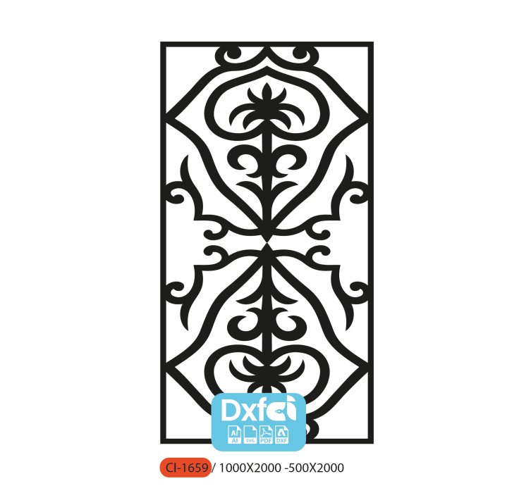 Kapı Panel Çizimleri Ferforje Seperatör Lazer Kesim Panel Dxf SVG Dekoratif Oda Bölücü Lazer Kesim Panel Korkuluk Çizimleri Lazer Kesim Çizimi Duvar Üstü Korkuluk, Villa Korkuluğu CI1659
