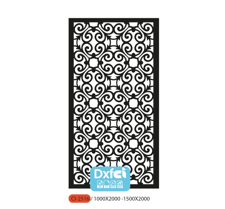 Kapı Panel Çizimleri Ferforje Seperatör Lazer Kesim Panel Dxf SVG Dekoratif Oda Bölücü Lazer Kesim Panel Korkuluk Çizimleri Lazer Kesim Çizimi Duvar Üstü Korkuluk, Villa Korkuluğu CI2516