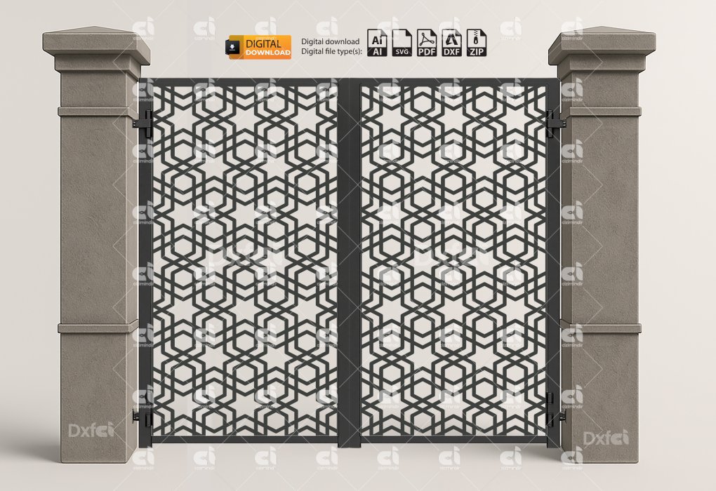 Yıldız Desenli Selcuklu Yıldızı Dxf Panel Lazer Bahçe Kapısı Gate Dxf Laser Cut Kesim Bahçe Kapısı #2862