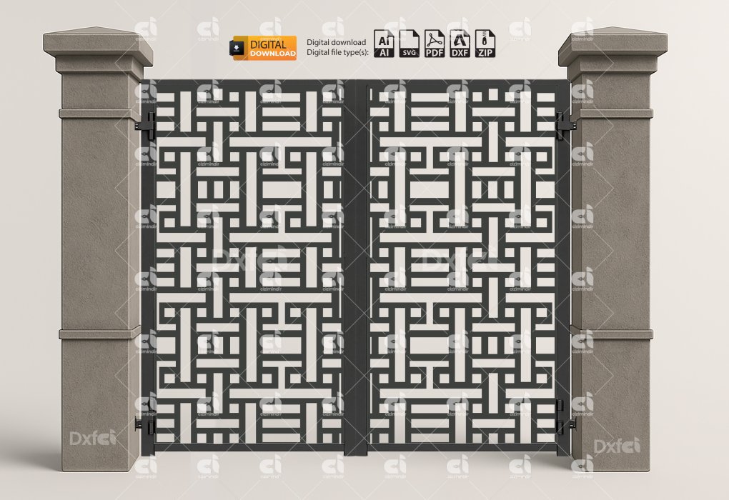 Kare Desenli Panel Lazer Bahçe Kapısı Gate Dxf Laser Cut Kesim Bahçe Kapısı #2869