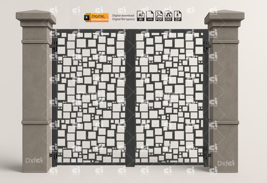 Kare Desenli Dxf Panel Lazer Bahçe Kapısı Gate Dxf Laser Cut Kesim Bahçe Kapısı #2875