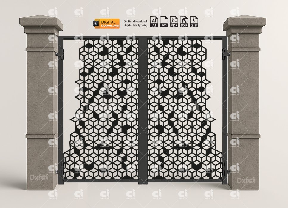 Dxf Panel Lazer Bahçe Kapısı Gate Dxf Laser Cut Kesim Bahçe Kapısı #2920