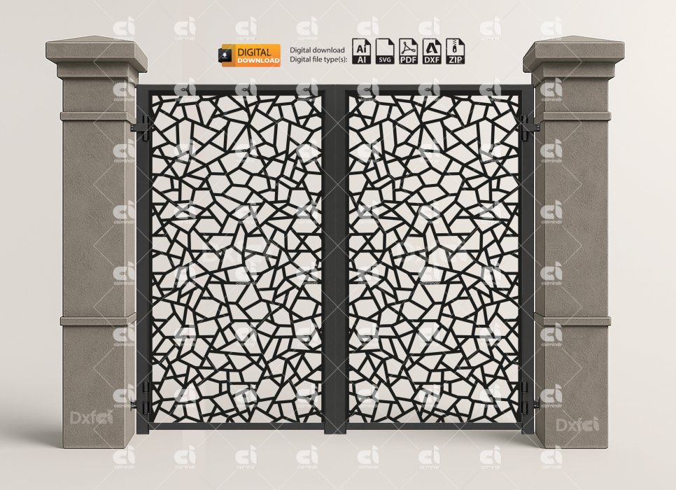 Kırık Camlar Dxf Panel Lazer Bahçe Kapısı Gate Dxf Laser Cut Kesim Bahçe Kapısı #2924