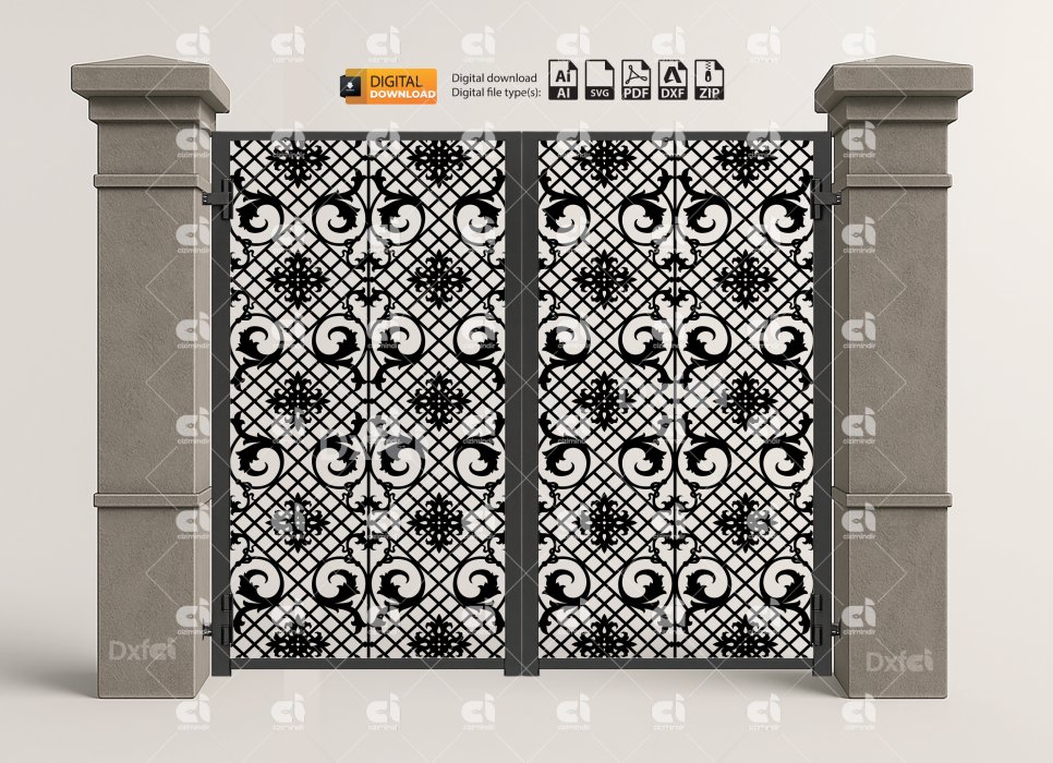 Dxf Panel Lazer Bahçe Kapısı Gate Dxf Laser Cut Kesim Bahçe Kapısı #3035