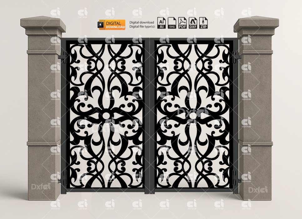 Dxf Panel Lazer Bahçe Kapısı Gate Dxf Laser Cut Kesim Bahçe Kapısı #3036